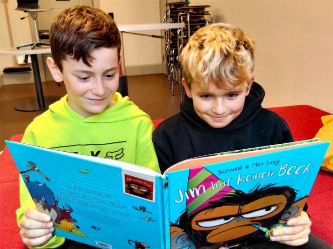 Gemeinsame Spiele, Unterrichtseinheiten oder Ausflüge wären geplant, doch die aktuelle Pandemie macht das Kennenlernen nicht einfach. Doch bekanntlich macht Not erfinderisch. Die Schüler:innen gingen in die Bibliothek und durften sich zu zweit ein Buch auswählen. Das Repertoire war gross, von «Jim hat keinen Bock» über Weihnachtsgeschichten bis hin zu Tiergeschichten. Die Bücher mit mehr oder weniger Text wurden anschliessend eingeübt. Mimik und Gestik wurden trainiert, das Tempo angepasst und das Buch spannend präsentiert. Zum Schluss wurde im Lesekämmerli aufgenommen.