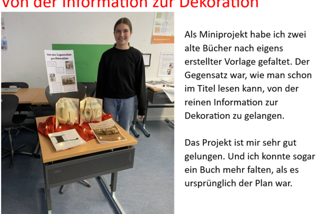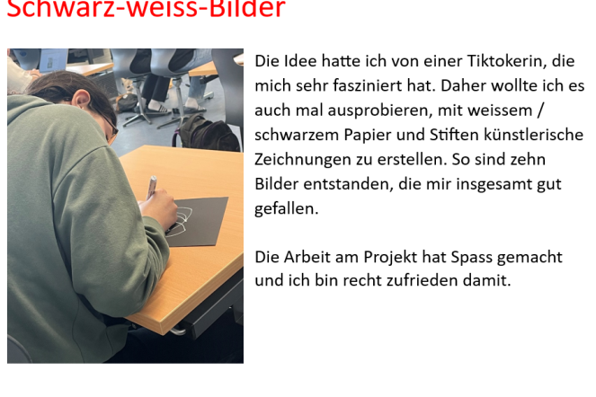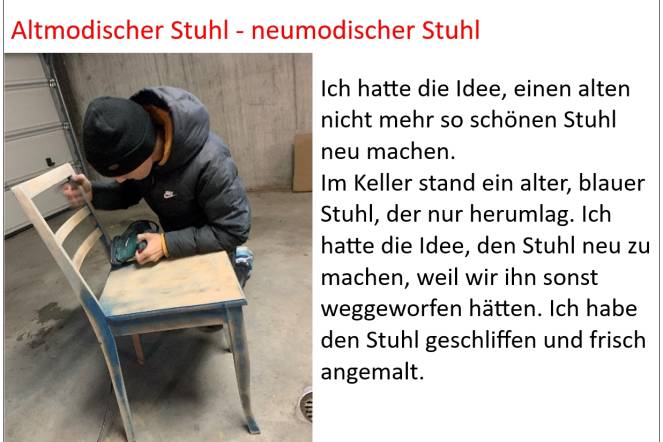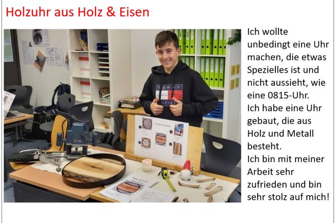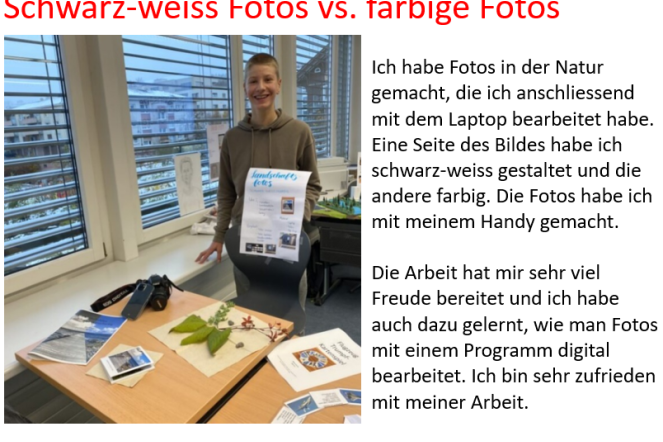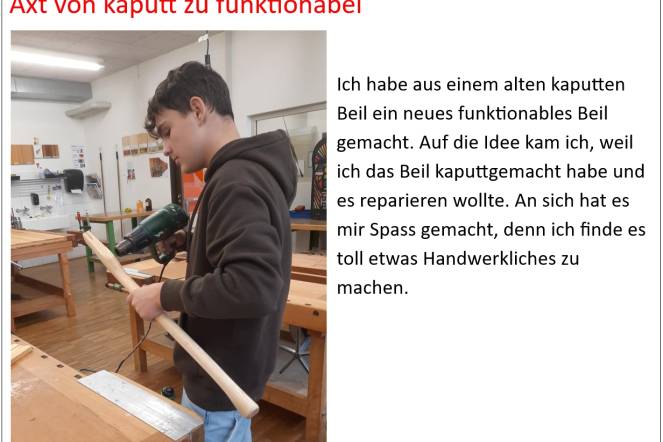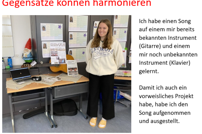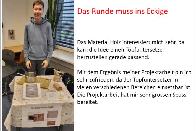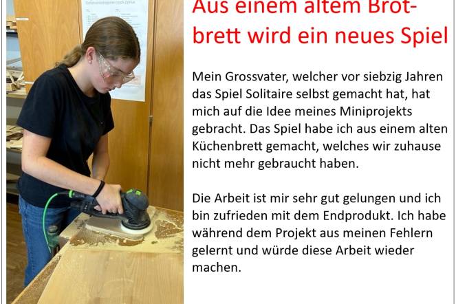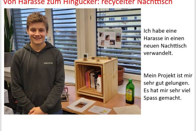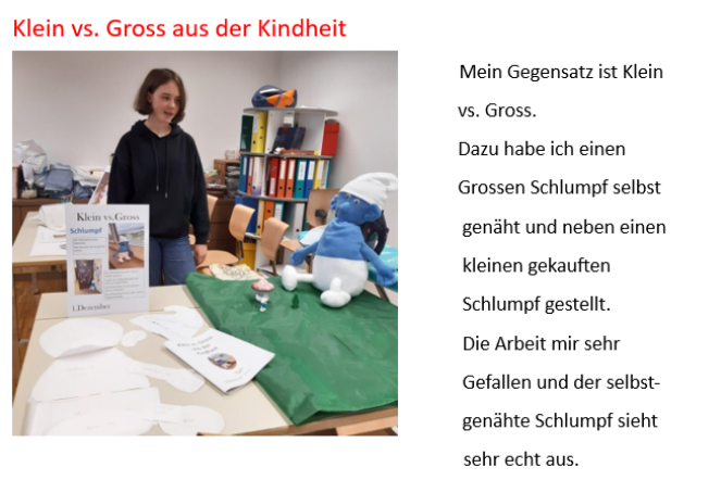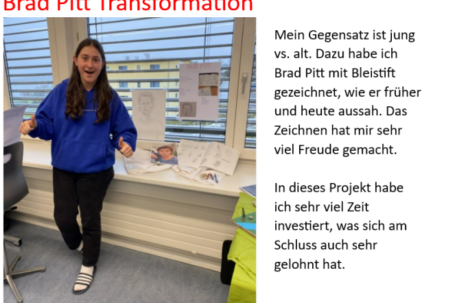 Im Rahmen des Projektunterrichts haben die Jugendlichen ein Miniprojekt zum Thema Gegensätze geplant, umgesetzt und ausgewertet. Nebst der Arbeit am Produkt haben sie bereits eine kleine Dokumentation dazu geschrieben und sich somit für die grosse Abschlussarbeit gewappnet, mit welcher wir dann im neuen Jahr starten werden.