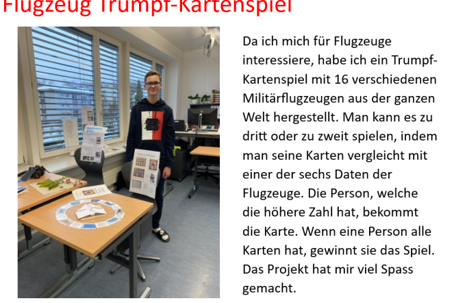 Projektunterricht 3. Sek - In der Fotogalerie werden alle Projekte kurz durch die jeweiligen Lernenden vorgestellt - viel Spass beim "Stöbern".