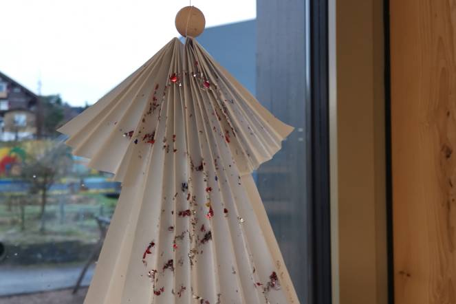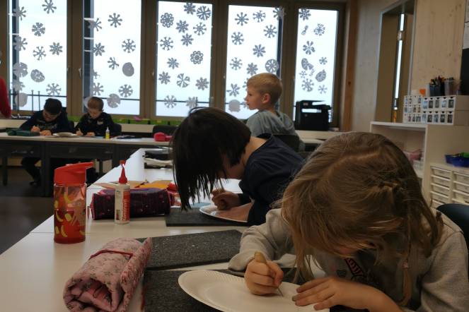 Damit es im Schulhaus noch etwas fröhlicher aussieht, haben alle Kinder während zwei Lektionen adventliche Fensterdekorationen gebastelt. Jedes Kind entschied selber, ob es einen Engel falten, Rentiere, Schneemänner oder Tannenbäume basteln wollte. Durch die fleissigen, kreativen Hände ist eine wundervolle Schulhausdekoration entstanden.