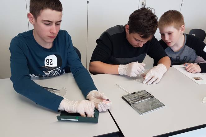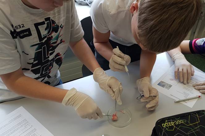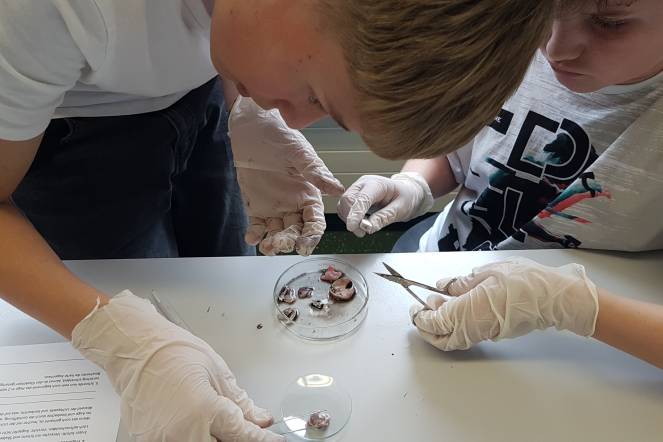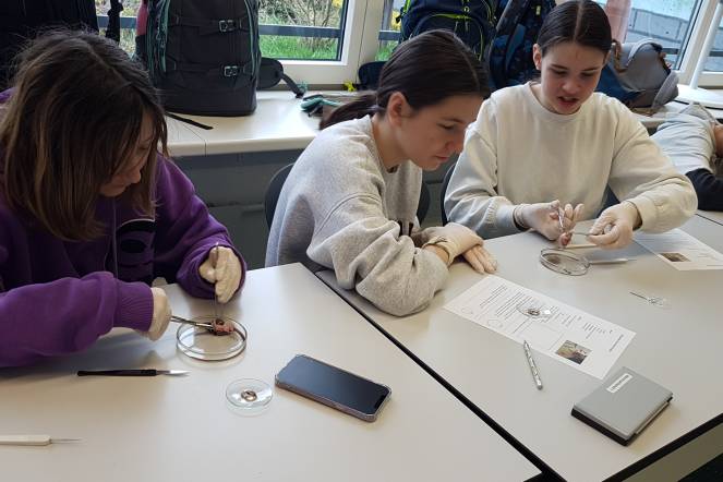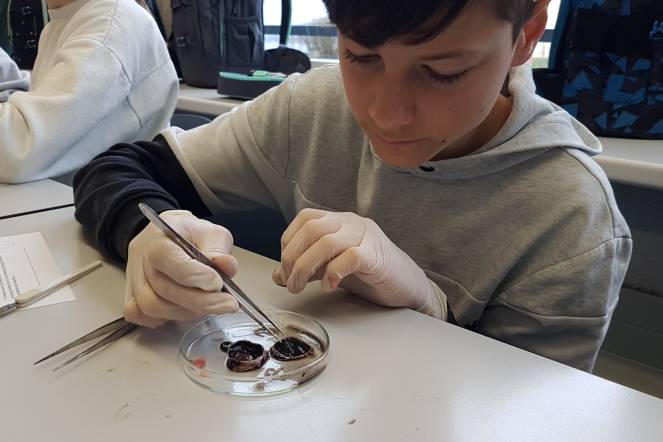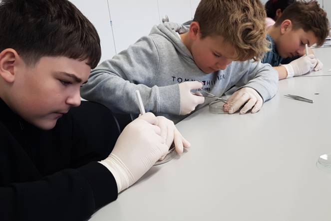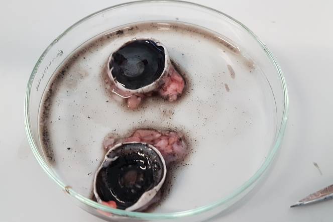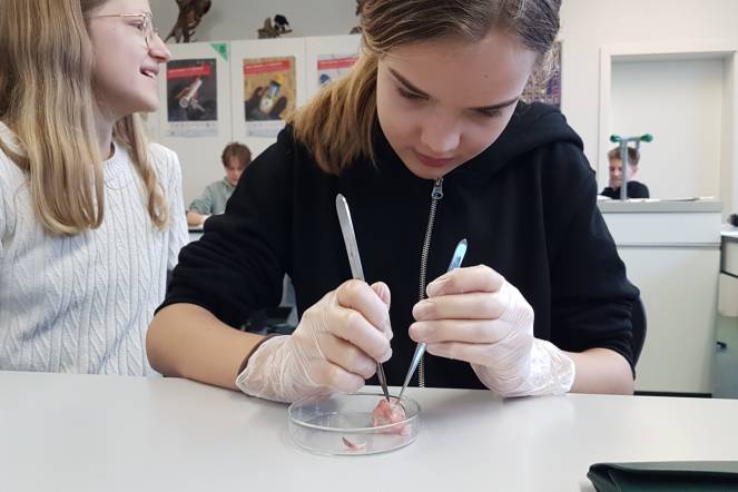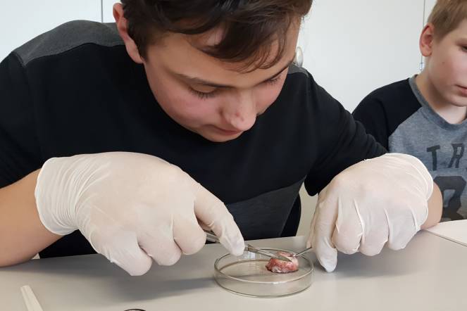 Die Schüler:innen der 1.Sek beschäftigten sich im Natur & Technik-Unterricht mit dem Thema ‘Sinne’. Als Höhepunkt dieser Einheit durften sie ein Schweineauge sezieren und genau untersuchen.