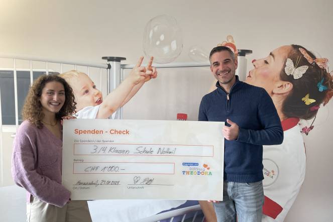 Vielen Dank für Ihre GROSSARTIGE Unterstützung zugunsten der Stiftung Theodora. Anbei das Foto der symbolischen Checkübergabe.