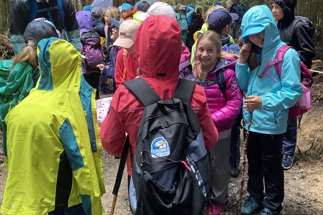 Wir waren gestern auf der Herbstwanderung. Wir konnten klettern und uns an den Seilen hochziehen lassen. Ich fand es toll, dass man Klettermöglichkeiten hatte. (Elena)