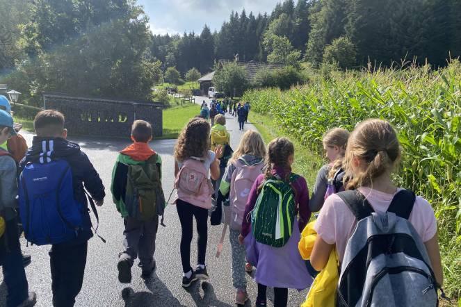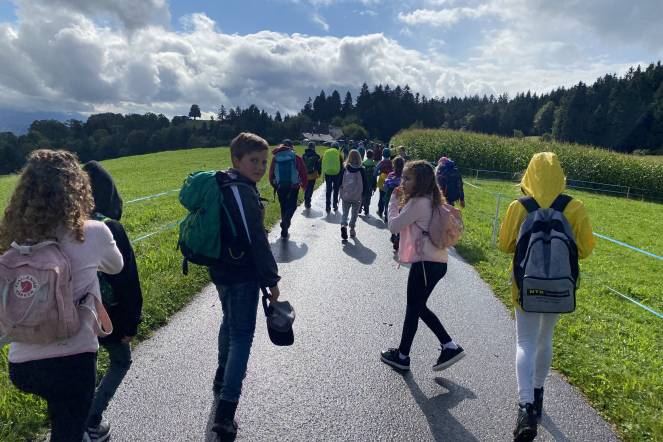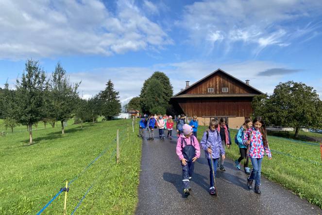 Die Herbstwanderung der 3./4.Klassen fand am Dienstag, 10.September statt. Unsere Wanderung führte uns vom Schulhaus hoch zur Flüsskapelle, weiter zur Grillstelle Sparrenhüsli und zurück zum Schulhaus.