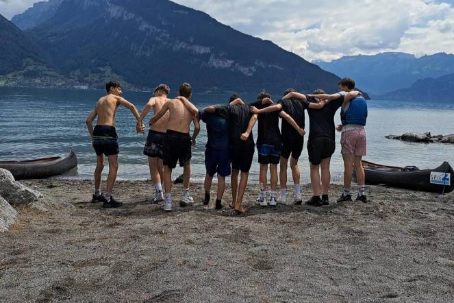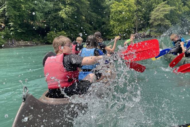 Die zweite Gruppe fuhr nach Thun und paddelte mit Kanus auf dem Thuner See, wo wir einen Strand suchten und dort Mittag assen. Am Nachmittag waren wir von etwa halb zwei bis vier Uhr ebenfalls in einer Badi am Thuner See.