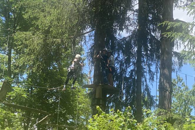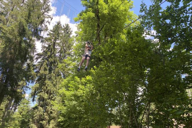 Die eine Gruppe war im Seilpark und verbrachte den Morgen bis zum Mittag in der Badi, nach dem Mittag gingen sie zum Seilpark und dann später noch einmal in die Badi.