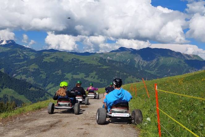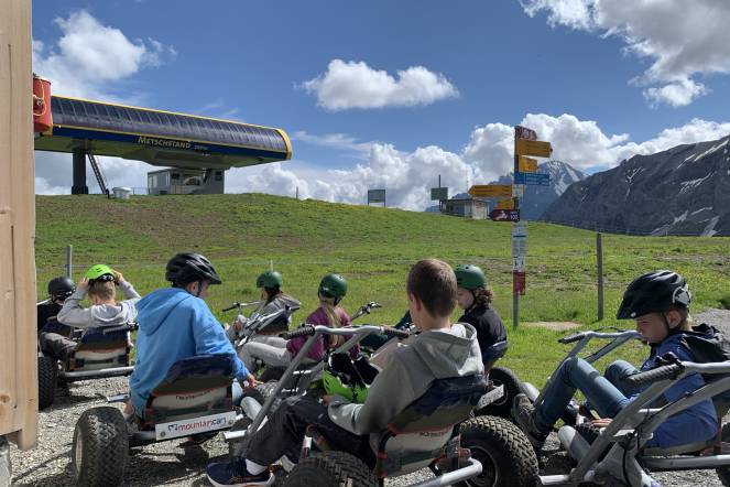 Nach einem gemeinsamen Frühstück, teilten wir uns in zwei Gruppen auf: Die Einen gingen Trottinett fahren und die Anderen gingen Mountaincarts fahren. Am Nachmittag gingen wir als Überraschung ins Kino. Beim Rückweg vom Kino, wurden wir vom Regen geduscht. Auch das Fussballspielen kam nicht zu kurz!