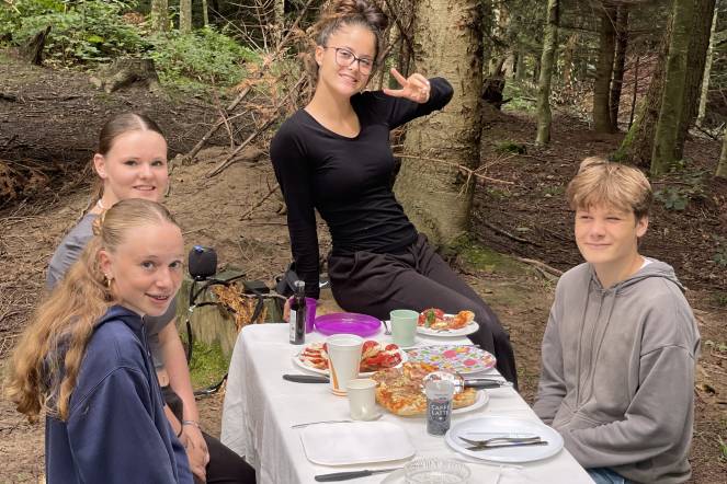 8 Gruppen aus den drei 3. Sekklassen versuchten im Projektunterricht ein möglichst originelles Outdoorcamp im Wald zu errichten. Dazu hatten sie lediglich 3 Lektionen Zeit, ein ansprechendes Ambiente und ein 3 Gang-Menü zu planen. Zur Vorbereitung gehörte ebenfalls dazu, sämtliche Rezepte aufzuschreiben, Einkaufslisten zu erstellen und Verantwortliche für alle Materialien zu benennen. Der Fantasie waren keine Grenzen gesetzt. Sämtliche Zutaten, Materialien und alle Dekogegenstände wurden von den Lernenden selbst organisiert und in den Wald getragen. Verlangt wurde ebenfalls eine schriftliche Planung, bei der Materialien, Rezepte und Verantwortlichkeiten ersichtlich wurden. So konnte die Jury nachvollziehen, wie die Ausführung untereinander aufgeteilt wurde – Teamwork war hier gefragt.