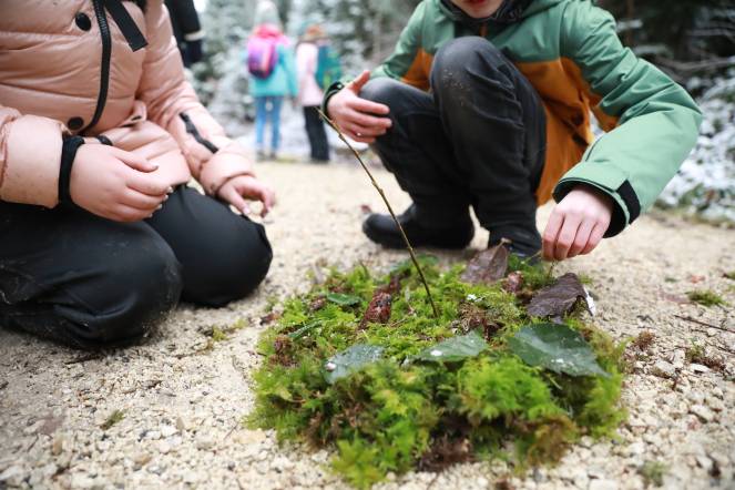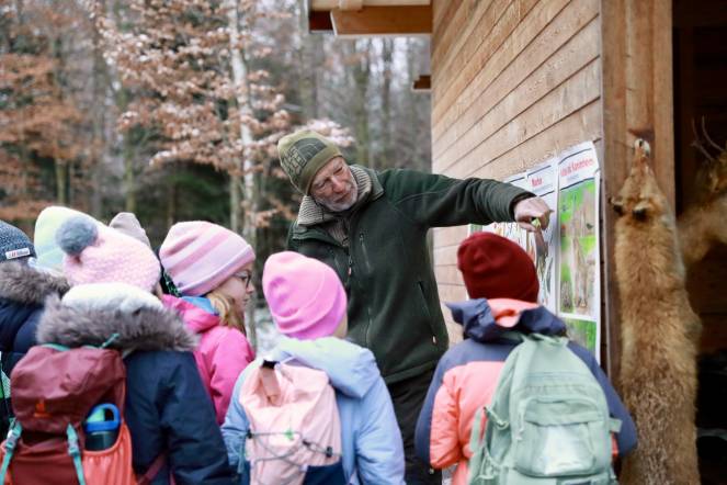 Den letzten Morgen vor den Weihnachtsferien verbrachten alle 3. und 4. Klassen im Wald. Gemeinsam machten wir uns auf den Weg in Richtung Nottwilerwald. Im Wald konnten die Kinder verschiedene Stationen besuchen. Sie spielten Verstecken, hörten dem Jäger zu, spielten “Tabu”, lauschten einer Geschichte, sangen Lieder und legten ein Mandala aus Naturmaterialien.