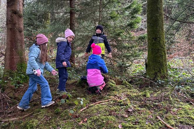 Am Freitag, 19. Dezember erlebten alle 3./4. Klassen einen besonderen Morgen im Wald. Nach einem gemeinsamen Spaziergang zur Familienfeuerstelle teilten wir die Kinder in verschiedene Gruppen ein. In diesen Gruppen besuchten die Kinder verschiedene Posten. Sie spielten Versteckis, hörten eine spannende Geschichte, bekamen viele interessante Informationen vom Jäger, stellten ihr Können beim Tabu- und Memory-Spiel unter Beweis. Ein weiteres Highlight war das Bauen einer Wichtelhütte. Zurück im Schulhaus sangen wir noch ein paar Weihnachtslieder und stimmten uns so in die Weihnachtszeit ein. Es war ein fröhlicher Morgen, den alle genossen haben.