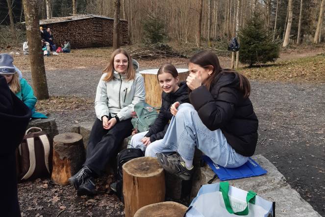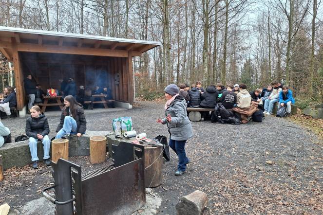Nach einem abwechslungsreichen Indoor-Morgen mit Jonglieren & Spielen folgte eine Wanderung in den Wald, wo bereits ein Feuer brannte. Dort wurde gemeinsam zu Mittag gegessen.