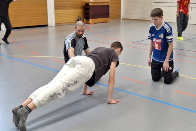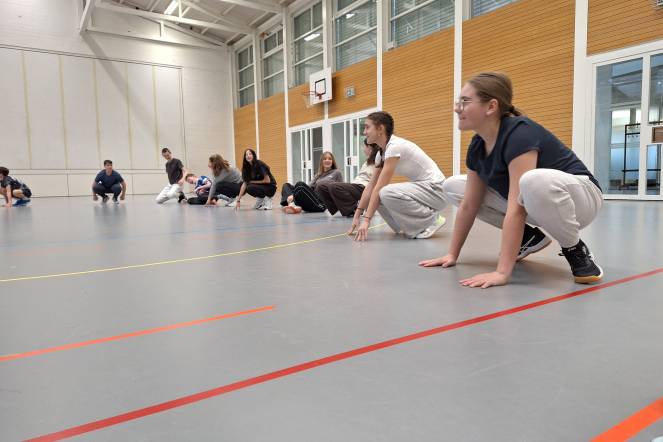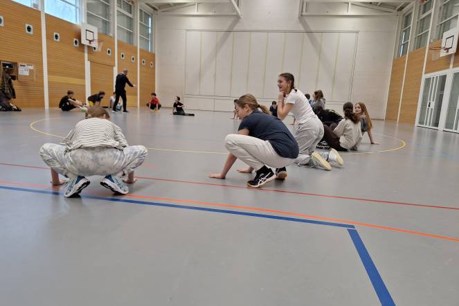 Unter der Leitung der 'Dirty Hands'-Breakdance-Gruppe durften die Schülerinnen und Schüler am Donnerstag einen Breakdance-Workshop absolvieren und sich auf vielfältige Art und Weise zu Musik bewegen!