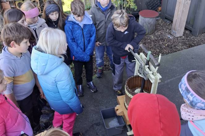 Was für ein Tag! Unsere dritten Klassen durften den Archehof in Hildisrieden besuchen – und dabei selbst erleben, wie aus Äpfeln leckerer Most entsteht.