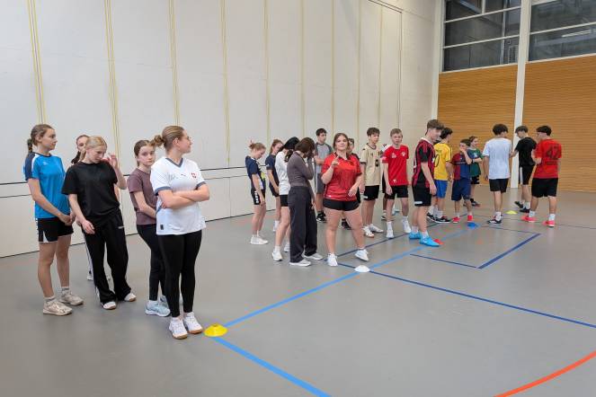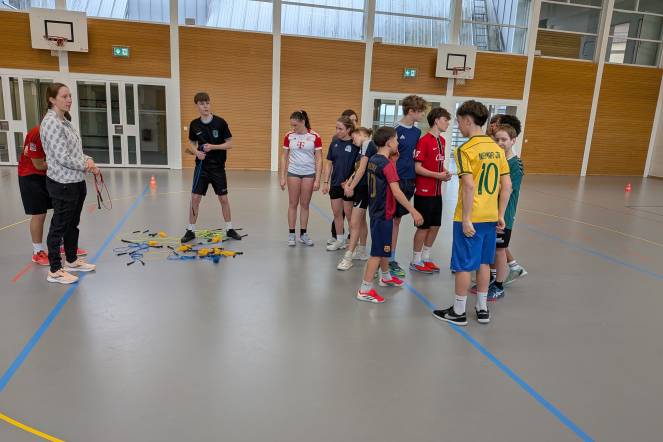 Nathalie Schäfer, in Frankreich geboren und seit 2007 in der Schweiz wohnhaft, leitete die Sport-Doppelstunde – bien sûr en français! 😊