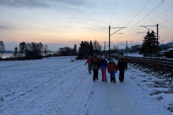 Die 4. Klassen der Schule Nottwil erlebten einen Wintersporttag, der ihnen noch einige Zeit in Erinnerung bleiben wird. Schon früh am Morgen trafen sich alle in Nottwil, dick eingepackt und bereit für das erste Abenteuer des Tages: den Marsch nach Sursee. Die Temperaturen lagen deutlich unter dem Gefrierpunkt, der Atem gefror beinahe in der Luft, und dennoch war die Stimmung erstaunlich fröhlich. Der Weg führte durch eine winterliche Landschaft, über knirschende Wege und vorbei an frostigen Feldern. Trotz der Kälte wurde viel gelacht, erzählt und motiviert weitergelaufen.