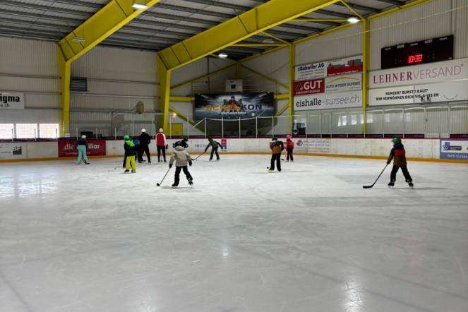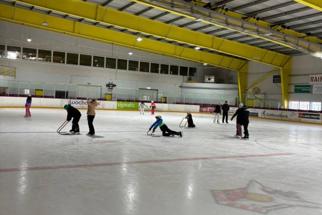 In Sursee angekommen, wartete der wärmende Innenraum der Eishalle – zumindest gefühlt, denn auch dort herrschte echte Winterkälte. Doch sobald die Schlittschuhe geschnürt waren, spielte das keine Rolle mehr. Die Kinder glitten über das Eis, mal elegant, mal wacklig.