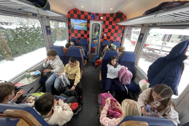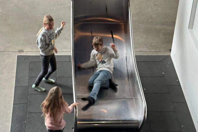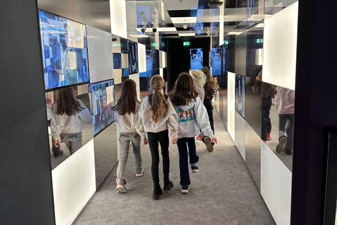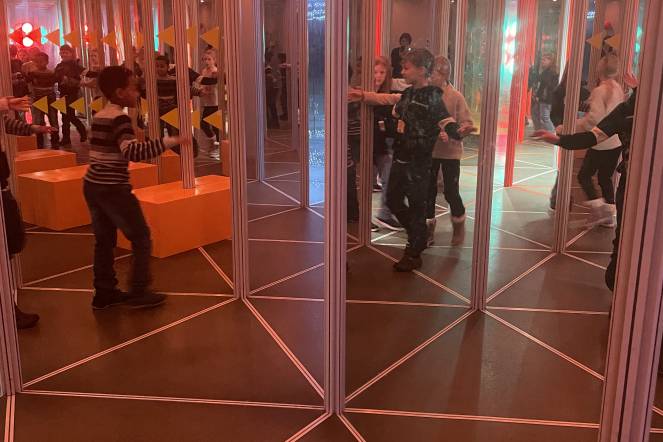 Wir waren in einem Würfel, der sich gedreht hat. Wir waren in einem Spiegellabyrinth. Wir waren in einem Zug Mitttagessen. Wir waren im Planetarium einen Film schauen. Leider waren wir nicht in der Schiffhalle. Wir waren auf dem Eis. Wir haben Weltraum Roboter gesehen. Wir sind eine grosse Rutsche runtergerutscht und das machte mega Spass. Wir standen auf dem Gleis. Es machte Spass!