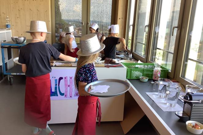 Seit den Osterferien haben die 2. Klass-Kinder in verschieden Fächern sich auf das Schulhausrestaurant vorbereitet.