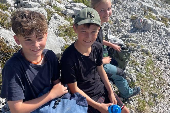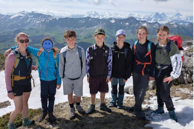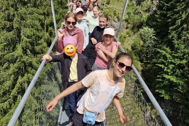 Heute sind wir um 6:30 Uhr aufgestanden und wurden mit einem Lied von Bob Marley, Travis Scott und Eminem geweckt. Danach haben wir etwas leckeres gefrühstückt und danach haben wir unsere Sachen zusammengepackt und haben uns bereit für den Wandertag gemacht. Dazu gehörte Sandwiches streichen für den Mittag. Bei den Wanderungen konnte man auswählen, ob man eine leichte, mittlere oder schwierige Wanderung machen möchte. Die leichtere Wanderung fuhr mit Frau Meyer und Frau Spanier zur Gondelbahn Rossweid. Wir liefen die Strasse hoch zum Restaurant und sind den Sonnentauweg abgelaufen. Zum Mittag gab es die Sandwiches und weitere Leckereien. Nachher gingen wir mit der Gondel runter. Bei der mittleren Wanderung sind wir von Flühli zum Chessiloch gewandert. Dort konnten wir den Wasserfall bestaunen und trauten uns sogar alle über die Hängebrücke zu laufen. Beim Rückweg gingen wir Kneipen, was ein riesiges Highlight war. Das Wasser war eiskalt und erfrischend. Bei der schwierigen Wanderung sind wir mit Herr Koch und Celine auf den Hengst gewandert. Bei der schönen Aussicht haben wir Mittag gegessen. Da oben gab es sogar noch Schnee. Die Wanderung dauerte etwa 5 Stunden und war sehr felsig und etwas steil. Trotz Anstrengung waren wir alle glücklich. Am späten Nachmittag waren wir noch in einem Freibad in Schüpfheim. Dort haben wir Volleyball und Fussball gespielt und gebadet. Im Freibad gab es eine Rutsche sowie ein 1-Meter- und ein 3-Meter-Sprungbrett. Nach einer kurzen Freizeit gab es leckere Würste mit Salaten und Chips. Am Abend gab es Disco und Spiele. Der Tag hat uns allen sehr gefallen und wir hatten viel Spass.