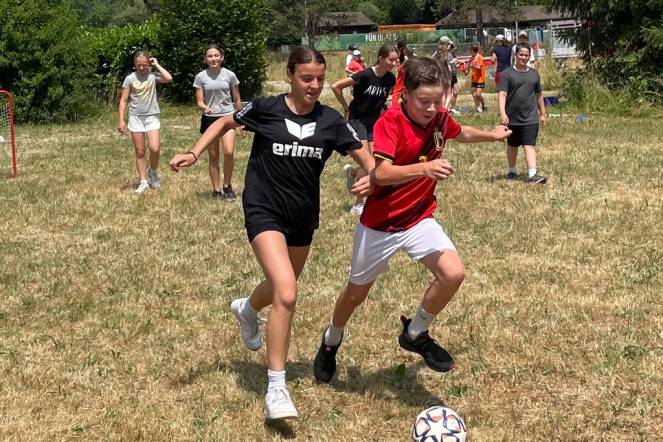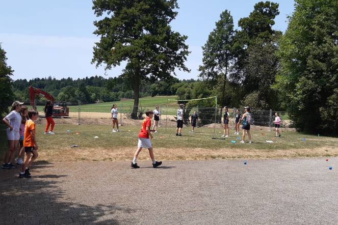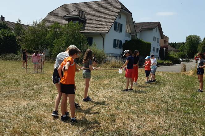 Der heutige Tag fing mit aufstehen, anziehen und frühstücken an. Ein paar wenige sahen etwas vertrottelt aus, weil sie wenig geschlafen haben. Wir bekamen Infos zum heutigen Tag, an dem wir einen Dorf OL und einen Vita Parcours machten. Dann wurden wir in Gruppen eingeteilt und getrennt zu den beiden Aktivitäten losgeschickt. Zum Mittagessen gab es super leckere Älpler Maccarone. Am Nachmittagsprogramm es ein Spielturnier, bei dem wir Boccia, Fussball, Seilziehen und Volleyball spielen konnten. Als Überraschung kam Herr Koch und brachte uns eine Glace zum Dessert. Danach gingen wir in die Badi Rothrist baden. Dort konnten wir uns abkühlen, auf einer tollen Rutsche runtersausen oder an einer Kletterwand über uns selbst hinauswachsen. Wer runterfiel, platschte lediglich ins Wasser.