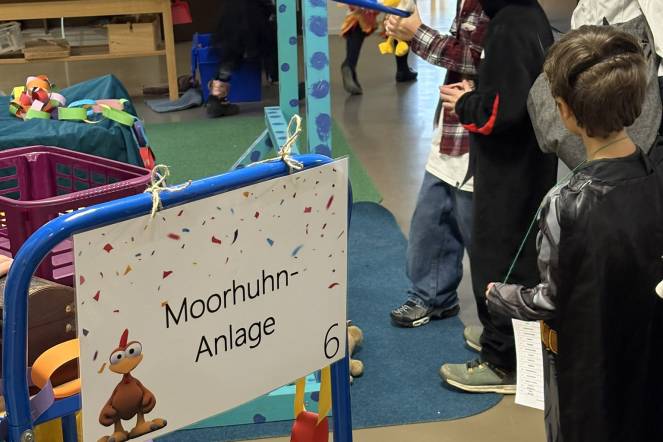 Am Mittwochmorgen, 11. Februar 2026 waren viele Tiere, Pirat:innen, Prinz:essinnen ... auf dem Schulhausareal unterwegs. Gross und Klein haben gemeinsam die Ateliers besucht und durften beispielsweise ihre Schnelligkeit beim Bobby-Car-Rennen, ihre Treffsicherheit an der Torwand, beim Büchsenwerfen, beim Kegeln sowie bei der Moorhuhn-Anlage, ihre Strategien im Casino und ihre Geduld beim Fischen beweisen. Es gab viele weitere Herausforderungen, eine Geisterbahn für die ganz Mutigen und auch Rückzugsorte, wo man basteln und Geschichten anhören durfte. Um durchwegs Vollgas zu geben, wurden die Schüler:innen mit leckerem Kuchen und Sirup gestärkt. Vielen lieben Dank an die Bäcker:innen für die Leckereien!