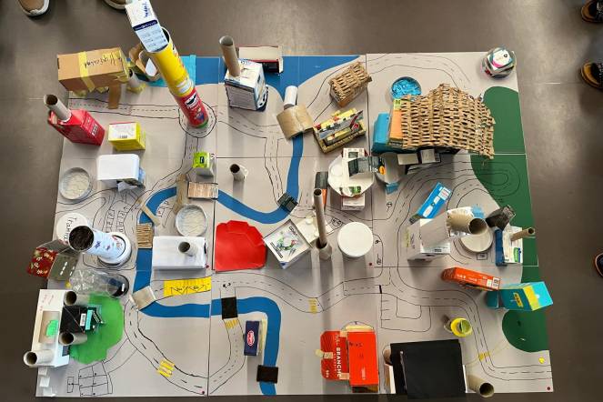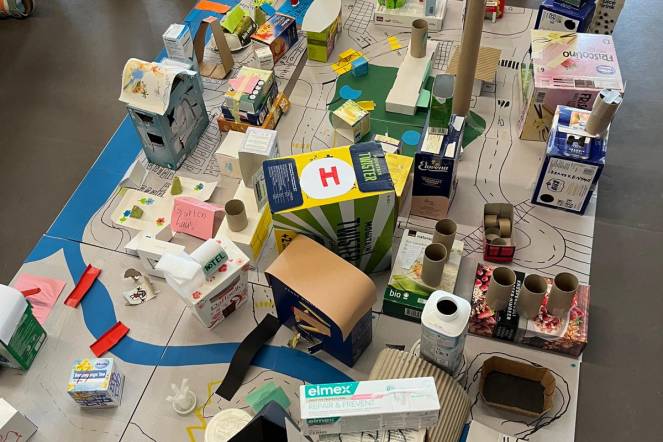 Die 2. Klässler haben sich im NMG mit dieser und anderen spannenden Fragen auseinandergesetzt. Wie lebe ich? Wie lebst du? Wie leben die Menschen an anderen Orten auf der Welt? Was brauchen wir zum Leben? Was gibt es in einem Dorf alles? Welche verschiedenen Gebäude sind dafür notwendig? In Kleingruppen haben die Kinder an einem Quartier gebaut. Immer wieder gab es dazwischen Stadtversammlungen, etwa um den Namen der beiden entstandenen Städte (Paradies-Stadt und Sonnenstadt) festzulegen, das Strassennetzt zu planen, über Bauten im See zu diskutieren, Naturschutzgebiete zu definieren und vieles mehr. Entstanden sind spannende Diskussionen und zwei tolle Städte mit vielen spannenden Gebäuden: verschiedene Wohnhäuser, Einkaufsmöglichkeiten, (Tier-) Ärzte und Spitäler, Gärtnereien, Bäckereien, Kinos, Fussballplätze und -stadien, Häfen, Bushaltestellen, Strassen und Parkplätze, Wolkenkratzer und Villen. Natürlich hat neben dem Bauen auch das Spiel mit Autos und Figuren in den entstandenen Städten Platz gefunden. Ein tolles Projekt, bei dem die 2. Klässler:innen viel gelernt haben und das allen grosse Freude bereitet hat.