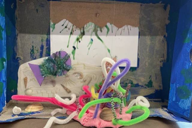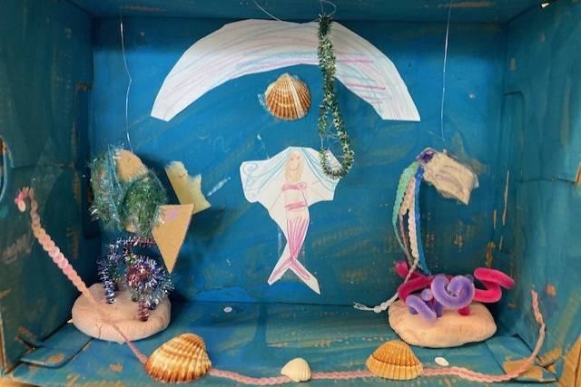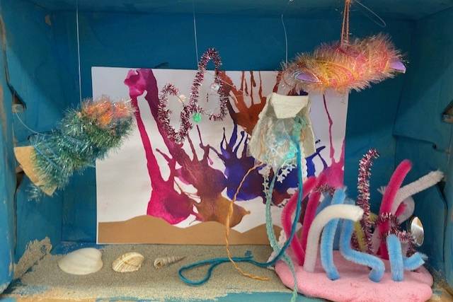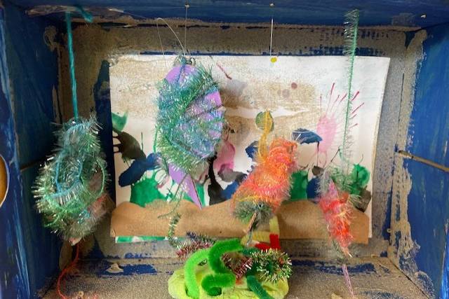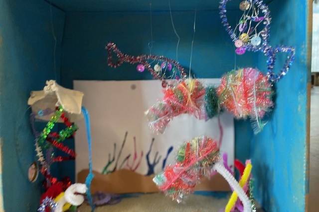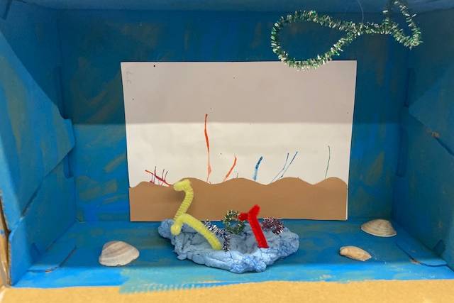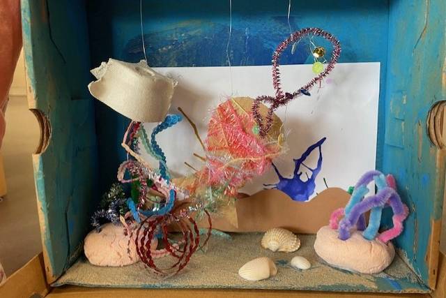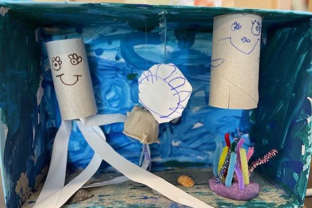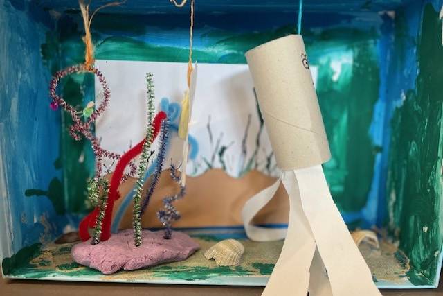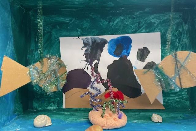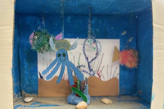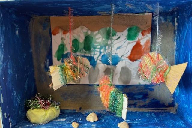 Zum krönenden Abschluss des Themas "Unterwasserwelt mit Zauberin Zilly" hat der Kindergarten E eine eigene Unterwasserwelt in einer Schuhschachtel gestaltet.