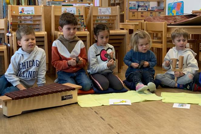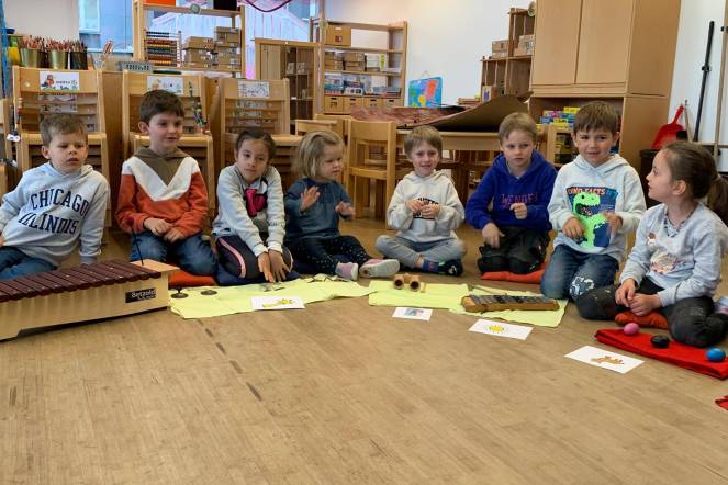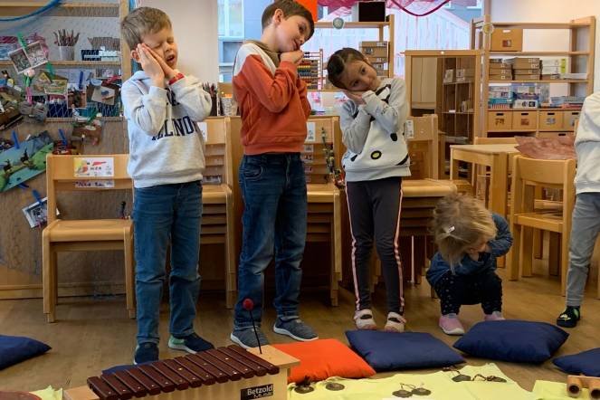 Wir planen im Kindergarten im Juni ein Theater mit den beiden Steinböcken Gian & Giachen zu spielen. Zurzeit lernen wir mit den Kindern die Geschichte gut kennen. Gemeinsam haben wir dazu die Geschichte mit Instrumenten vertont. So klopft der Specht auf dem Agogo, mit dem Ozeandrum wird das Bachgeräusch nachgespielt oder die Sternschnuppen erscheinen mit feinen Cymbelnklängen. Die Kinder versetzen sich in die verschiedenen Rollen der Tiere und sind schon oft am überlegen, ob sie dann gerne den Bartgeier Candrian, den Luchs Leo oder doch lieber das Murmeltier Madlaina spielen möchten. Eine spannende Zeit mit viel Rollenspiel, Kullissenbau und Requisiten gestalten, steht uns bevor.