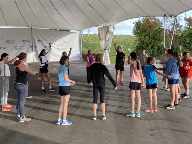 Nach dem Mittag beschäftigten sich die Schülerinnen und Schüler im Rahmen eines Ateliers intensiv mit einer Sportart. Die Jugendlichen hatten dabei die Wahl zwischen Ateliers im Schwingen, Squash, Disc-Golf, Stand-Up-Paddling, Tanzen und Handball.