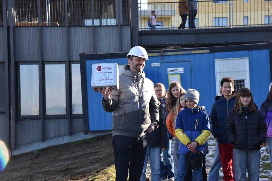 Die Bauarbeiten für die zweite Etappe der Schulraumerweiterung sind gestartet. Mit dem Spatenstich zur Nottwiler Schulraumerweiterung kam der zweite Teil des zweiteiligen Bauprojekts ins Rollen. Bis im Sommer kommenden Jahres soll das neue Gebäude bezugsbereit sein.