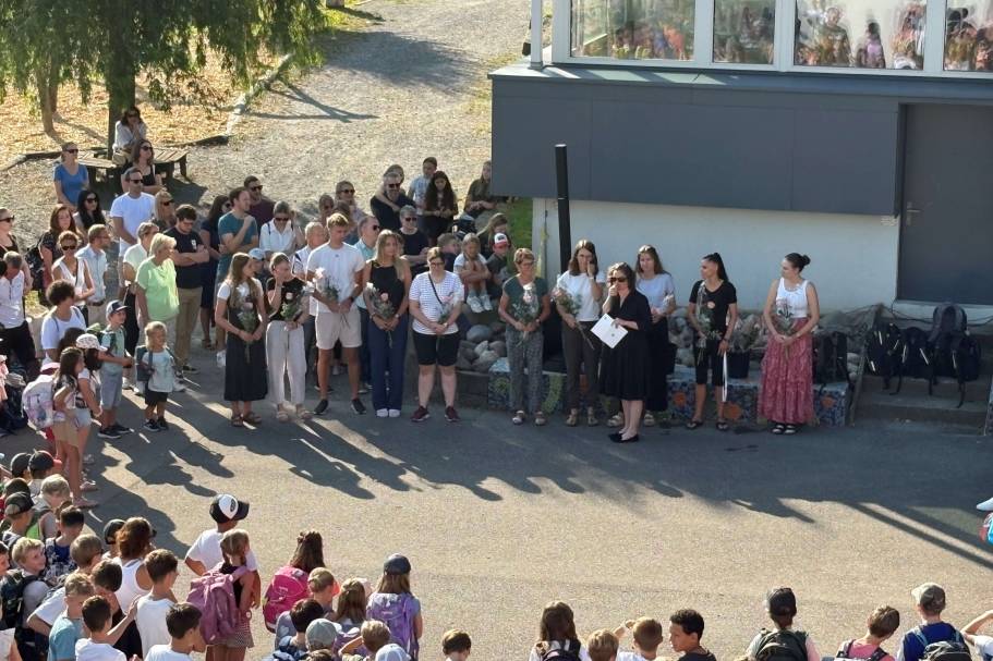 Ein farbenfrohes Bild bot sich auf dem Pausenplatz: Die Lernenden der 6. Klassen empfingen die fünf neuen Kindergartenklassen mit bunten Wimpeln, auf denen die Namen der Kinder standen. Mit viel Herzlichkeit und Applaus wurden die Kleinsten in die Gemeinschaft aufgenommen. Nach kurzen, inspirierenden Worten des Präsidenten der Bildungskommission, Stefan Federspiel, und der Schulleitung des Zyklus 1, Jasmin Willisegger, zogen die Kindergartenkinder durch ein leuchtendes Sonnenblumenmeer in ihre Schulhäuser ein – ein symbolischer Start in ihre Bildungsreise. Auch die drei neuen 1. Primarklassen wurden feierlich durch ein Spalier aus Blumen begleitet und als Klassen willkommen geheissen.